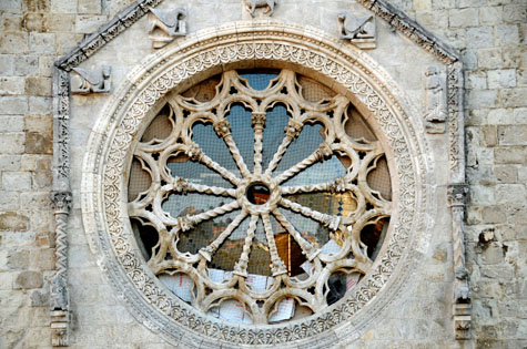 Di particolare rilievo, inoltre, è il rosone a 13 raggi, al centro del quale si trova l’Agnello mistico. Lo stesso è circoscritto da bassorilievi raffiguranti gli animali, simbolo dei quattro evangelisti.